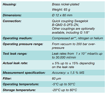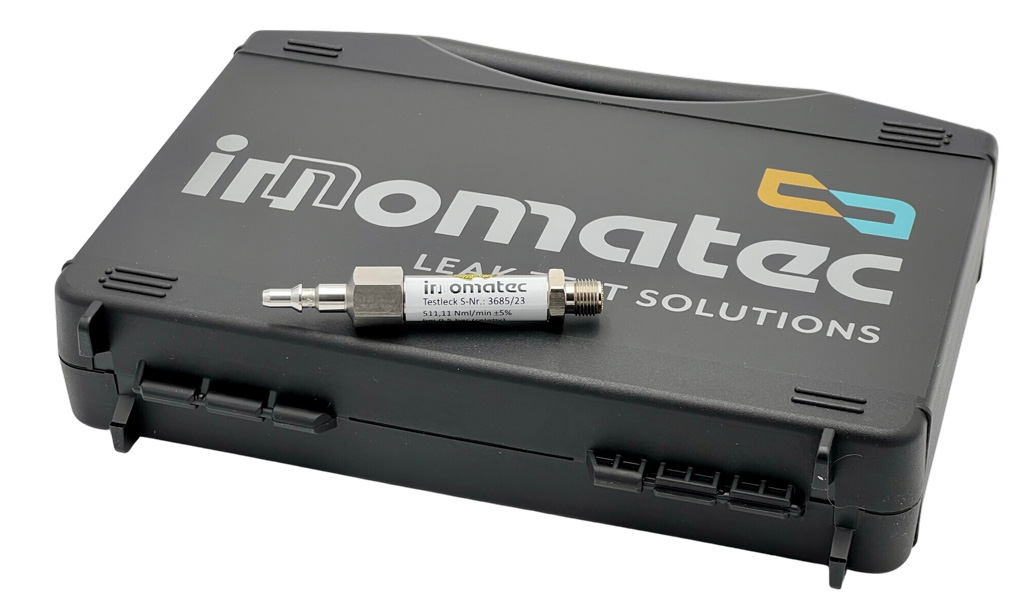 The innomatec test leak is used for thoroughly inspecting leak measurement devices and/or leak testing systems as part of quality assurance. To do this, the operator will first confirm the functioning of the machine with a leak-tight master part. Then, a test leak is applied to the machine to simulate a known, calibrated leak rate (either manually, built into the leak tester, or directly on the master part). If the test results are consistent with the test leak simulator, then the process is properly calibrated with established quality specifications. Using test leaks, the functional capability of test equipment can be checked easily, quickly and cost-effectively.